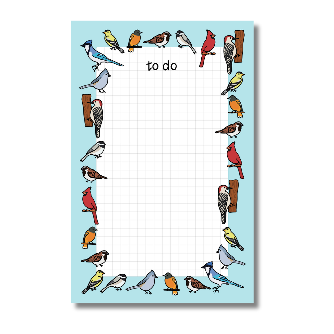 Every to do list is better with your favorite backyard birds. The one thing you won't forget to add: bird seed for the feeder. This notepad has 50 tearaway sheets, is printed on recycled paper in the US, and has a magnet on the back for easy fridge hanging.