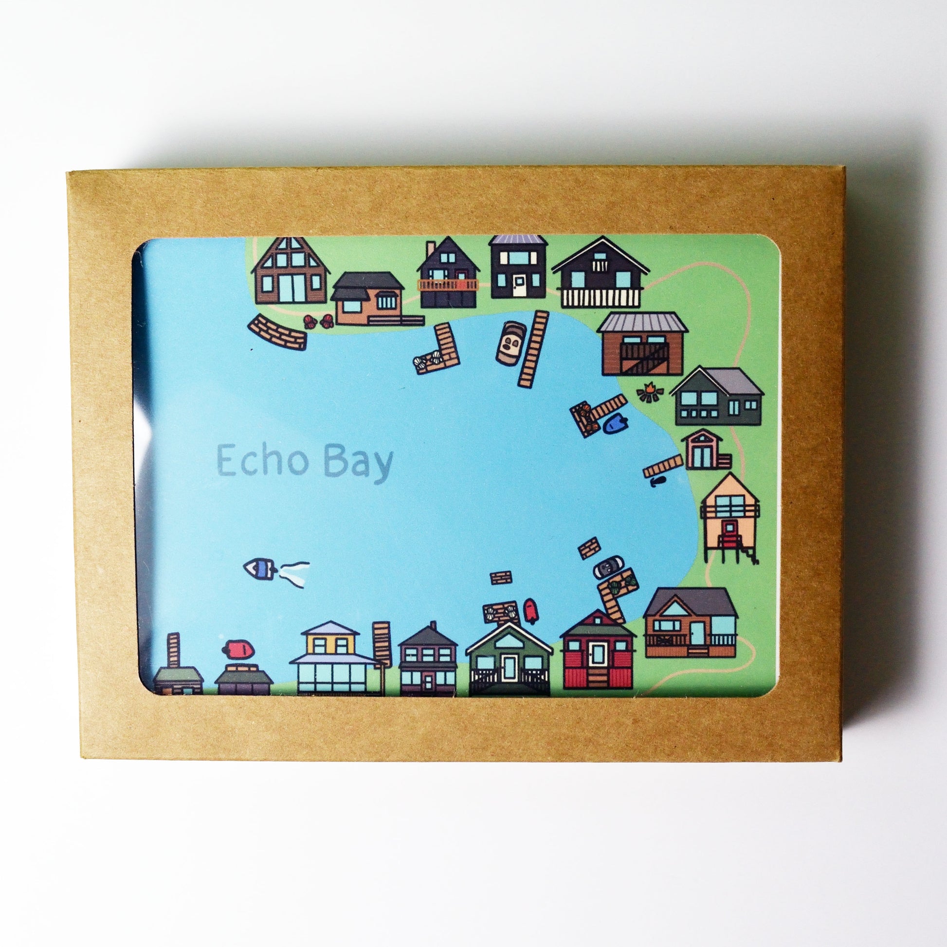 Each set includes 10 flat notecards and kraft envelopes with a loon design.